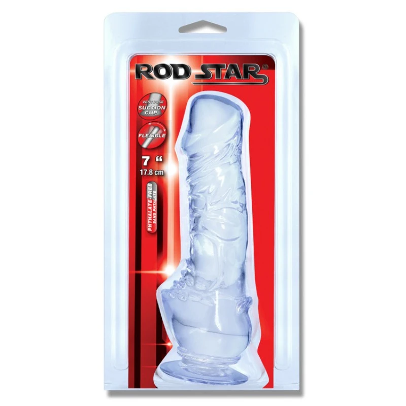 Rod Star®, flexible, doux, durable, des années de bonheur et de bon fonctionnement. Sans phtalate ni latex et sans odeur, il est doux et sécuritaire pour votre peau. Assurez-vous d’avoir un authentique produit Rod Star®; pour la qualité, la fiabilité,la sécurité, le confort et votre entière satisfaction. Il a une longueur totale de 7’’ (17.8 cm), un diamètre de 1.6’’ (4 cm) ainsi qu’une ventouse à sa base. Un modèle translucide clair, spécialisé pour chatouiller le clitoris de plus près.
