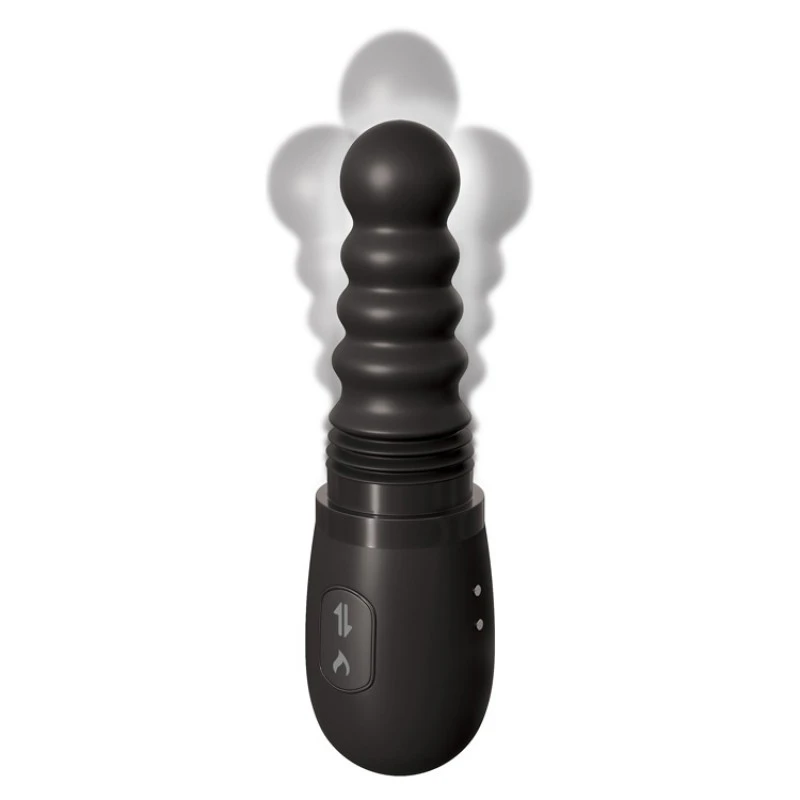 Le Gyrating Ass Thruster comprend une puissante balle vibrante à son extrémité, un puissant piston poussant/giratoire alimenté par un moteur rechargeable et un noyau chauffant interne qui réchauffe la tige jusqu’à 40 ° C (104 ° F).
