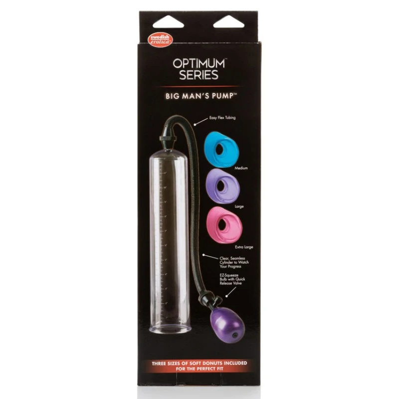 La Big Man’s Pump est conçue pour s’adapter à la longueur et à la circonférence des hommes les mieux dotés. Profitez d’une taille, d’un plaisir et d’une fermeté optimale avec une pompe conçue pour satisfaire les bites les plus imposantes! Ce cylindre surdimensionné de 12 pouces utilise l’énergie du vide pour augmenter la pression et le flux sanguin vers votre pénis pendant que vous pompez. Au fil du temps, ce processus peut augmenter la sensibilité, maximiser la taille et vous donner des érections plus fermes. Il est parfait pour améliorer les jeux en solo et en couple afin de rendre votre virilité encore plus impressionnante. La pompe comporte un cylindre transparent pour que vous puissiez suivre vos progrès et profiter de la vue de votre tige monstre. Trois manchons colorés et interchangeables de différentes dimensions (petit, moyen et grand) sont fournis avec votre pompe pour garantir un ajustement parfait. Tous les trois sont fabriqués en TPE ultra-doux pour un confort incroyable, un plaisir optimal et une fermeture hermétique qui vous aidera à tirer le meilleur parti de votre expérience de pompage. L’ampoule confortable vous permet d’augmenter votre pression avec une pression de la main. Et, une fois que vous avez fini de pomper, une valve à libération rapide relâche immédiatement la pression de votre pénis. Offrez à votre pénis une croissance, un plaisir et une dureté maximum avec une pompe conçue pour les pénis les plus grands et les plus longs. Atteignez votre potentiel ultime!
