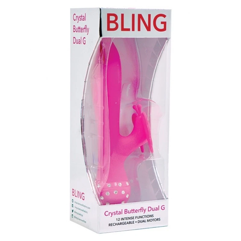 Ajoutez du piquant avec Bling ! Rencontrez votre nouvel ami sexy avec la pointe légèrement effilée qui glisse facilement pour des heures de satisfaction. Le papillon atterrit à l’endroit parfait et les ailes battantes créent une sensation aussi brillante que les cristaux entourant la base. Entièrement rechargeable, cette beauté en silicone a 12 vitesses différentes de vibration et de pulsation et est facile à utiliser avec des commandes à une touche. Vas-y. Bling votre temps personnel privé avec éclat et plaisir ! Étanche.
