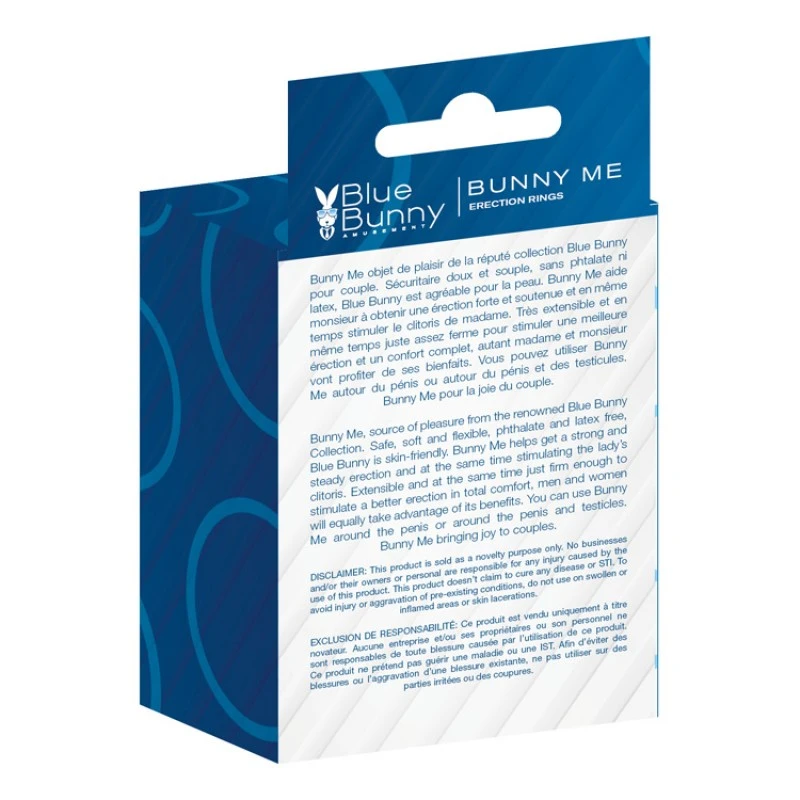 Bunny Me objet de plaisir de la réputé collection Blue Bunny pour couple. Sécuritaire doux et souple, sans phtalate ni latex, Blue Bunny est agréable pour la peau. Bunny Me aide monsieur à obtenir une érection forte et soutenue et en même temps stimuler le clitoris de madame. Très extensible et en même temps juste assez ferme pour stimuler une meilleure érection et un confort complet, autant madame et monsieur vont profiter de ses bienfaits. Vous pouvez utiliser Bunny Me autour du pénis ou autour du pénis et des testicules.