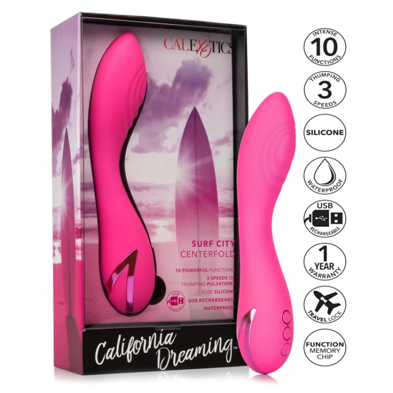 Détendez-vous dans les vagues du plaisir avec le California Dreaming ™ Surf City Centerfold. Il vous excite et vous emporte vers l’extase. Le puissant appareil de massage à baguette possède 3 intensités de pulsations et 10 fonctions de vibration pour une expérience de plaisir unique.