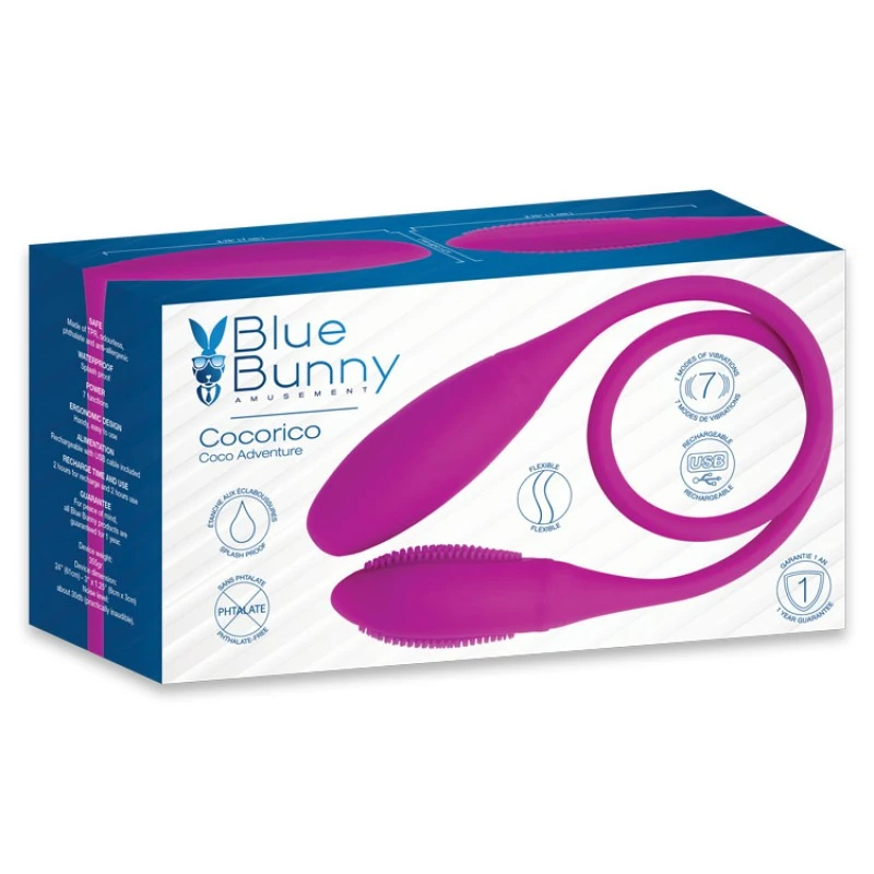 Cocorico un autre produit original de la réputée Collection Blue Bunny. Une aventure double vous attend avec Cocorico, le vibrateur binôme œufs vibrants. Cocorico laisse libre cours à votre manière de vous amuser avec une paire d’œufs vibrants qui sont couplés entre eux par une longue corde de 24’’ (61cm) qui ressemble à une corde à danser. À partir de là, imaginez les innombrables possibilités de plaisir, seul bien sûr ou à deux bien entendu! Cocorico se manie dans toutes les positions possibles et de par sa longueur il rejoint facilement toutes les parties de votre corps et celui de votre partenaire et toujours en double plaisir. Chaque œuf mesure 3’’ x 1.25’’ (8cm x 3cm), un est tout à fait lisse et l’autre a de douces protubérances. Il a 7 rythmes de vibrations différents, il est rechargeable avec un câble USB inclus. Cocorico un produit de la marque Blue Bunny, qui vous offre un équilibre aussi parfait entre confort, efficacité, sécurité, prix et garanti 1 an. No.BB21027