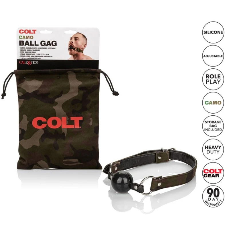 Abandonnez-vous Ă la passion avec le masculin ColtÂź Camo Ball Gag; Retrouvez les gĂ©missements primitifs et augmentez le plaisir avec le bĂąillon-balle en silicone souple. L’intĂ©rieur est en cuir vĂ©gĂ©te matelassĂ© et la toile de camouflage est extra-rĂ©sistante.