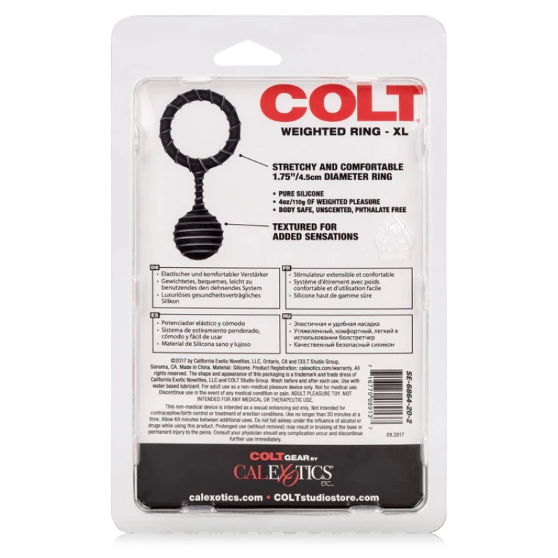 Les innovateurs en jouets érotiques pour adultes de CalExotics et les experts du plaisir centrés sur les hommes de Colt se sont associés pour créer une gamme de jouets sexuels pour hommes dédiés aux plaisirs masculins. Que vous soyez débutant ou expert en érotisme, la bague pondérée de Colt est là pour vous aider à améliorer votre côté aventurier. La balle est reliée à l’anneau de pénis durable et extensible recouvert rangée après rangée de crêtes palpitantes. Notre cockring masculin polyvalent est idéal pour tous les niveaux de plaisir et ceux qui cherchent à allonger leur outil de plaisir. Le cock ring en silicone confortable peut être porté pour augmenter la longueur sans effort. Le matériau hypoallergénique non poreux se marie parfaitement avec votre lubrifiant à base d’eau préféré. Disponible en X-large. COLT Studio Group partage sa vision unique de l’homme masculin avec le monde entier à travers la photographie, le film, la vidéo et une grande variété de produits exclusivement masculins. COLT Studio Group célèbre l’appel érotique de la masculinité. COLT est le nom le plus réputé dans les produits érotiques exclusivement masculins. Si le look est masculin, le nom est COLT!