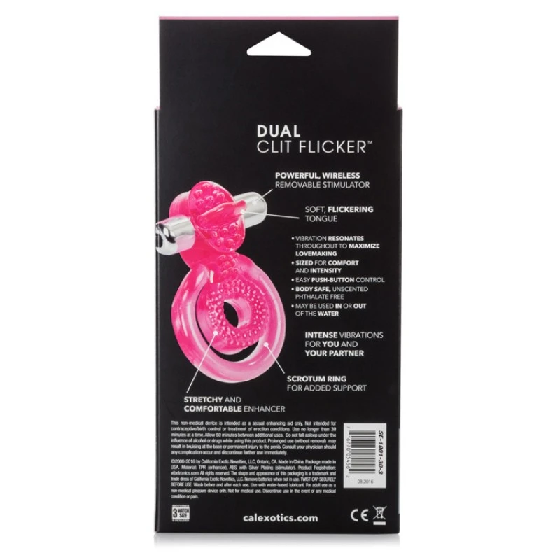 Partagez l’exstase avec le scintillement Dual Clit Flicker Ă 3 vitesses. Lâextenseur d’Ă©rection lui offre un double soutien maximum et un plaisir de stimulation du clitoris allĂ©chant pour elle. La bague Ă©lastique facile Ă utiliser est fournie avec un stimulateur en forme dâĆuf vibrante amovible et rĂ©utilisable pour une expĂ©rience mĂ©morable. Le Dual Clit Flicker est fabriquĂ© Ă partir de TPR non parfumĂ© ultra-extensible et ultra-extensible. L’anneau fournit un support double pour l’Ă©rection et comprend un anneau pĂ©nien texturĂ© et un anneau pliable plus grand qui se fixe autour du scrotum. Le stimulateur propose une action Ă©rotique de la langue qui vibre intensĂ©ment sur le clitoris. Le stimulateur offre des vibrations puissantes et peut Ă©galement ĂȘtre utilisĂ© indĂ©pendamment. IdĂ©al pour les dĂ©butants et les utilisateurs expĂ©rimentĂ©s, le Dual Clit Flicker amĂ©liore le divertissement des adultes. Enfilez le support Ă double anneau extensible et confortable pour une performance maximale qui ne se termine jamais. Utiliser avec un lubrifiant Ă base d’eau. Avant et aprĂšs chaque utilisation, nettoyez la bague de maintien de l’Ă©rection avec un spray nettoyant pour jouet ou lavez-la Ă l’eau savonneuse.