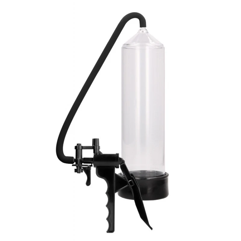 Avec son cylindre d’une longueur totale de 23 cm (9″) et d’un diamètre de 6 cm (2,35″), cette pompe de haute qualité vous offre de nombreuses possibilités de grandir dans les deux sens! La longueur totale du tuyau est de 25 cm (10″) et le manchon d’insertion est en silicone. Surprenez-vous à chaque fois sur la taille que vous pouvez obtenir! Il existe une version transparente et trois couleurs différentes sont aussi disponibles: bleu, rouge ou noir. Cette variante est livrée avec une pompe à main confortable et une valve à dégagement rapide pour votre confort!