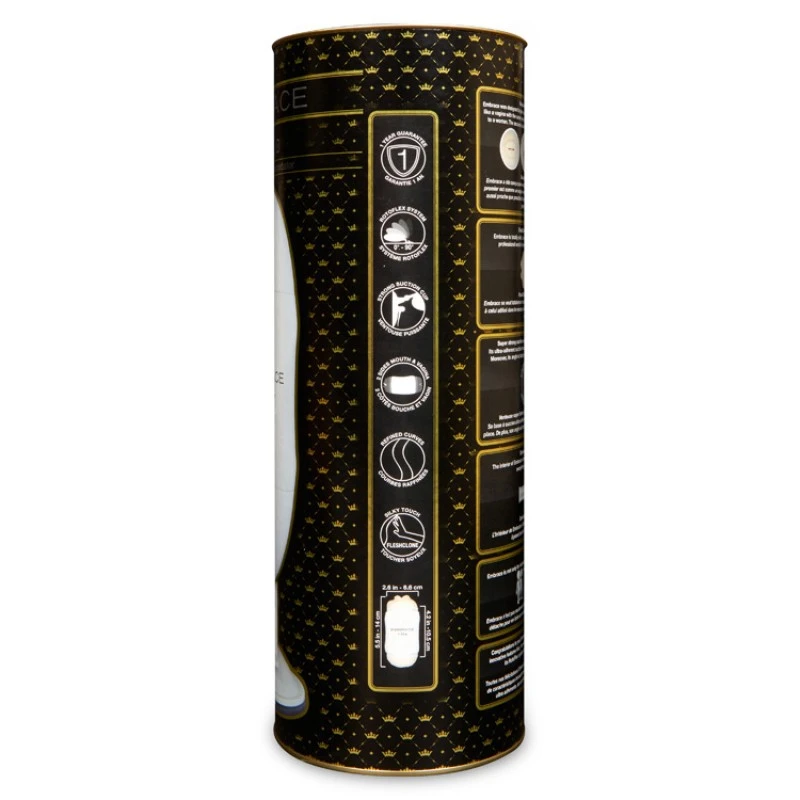 La liste non humaine de produits qui sont si évolués et si proches de la nature est extrêmement courte. Globalement son design, la manière qu’il touche votre pénis, Embrace, c’est comme redécouvrir son pénis. Je suis certain que vous n’êtes pas étranger au sexe vraiment génial, et en même temps vous pensez connaître votre corps, mais Embrace réveille réellement des récepteurs de plaisir sur toute la surface du pénis, ces plaisirs que vous ne pensiez peut-être même pas être disponibles. C’est certainement l’expérience masturbatrice la plus satisfaisante que vous n’aurez jamais eue de votre propre main ou de la main d’un autre et même d’une bouche! Chaque fois que vous utiliserez Embrace, vous vous sentirez ensuite comme si vous aviez fait quelque chose de vraiment bon et agréable pour vous, un genre de satisfaction totale d’avoir profité d’un orgasme qui vide et fait jouir vraiment son homme!