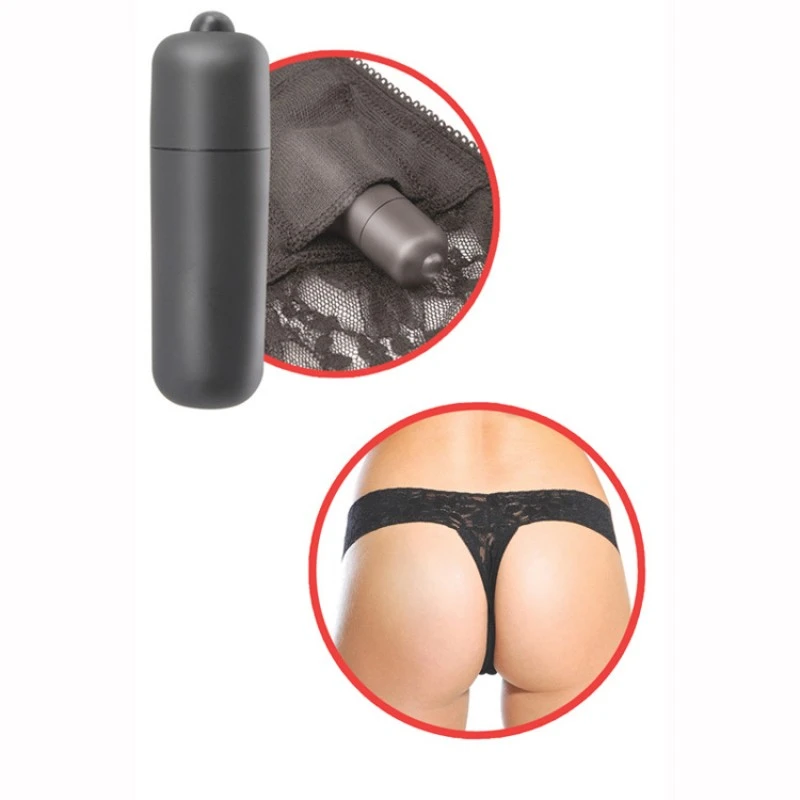 Savez-vous garder les secrets ? Caché discrètement dans ce sexy thong de dentelle taille basse se trouve une micro dragée dont le but est de vous faire trembler ! La douce bande élastique est si confortable que vous oublierez que vous portez un slip… jusqu’à ce que vous déclenchiez le micro stimulateur. L’action d’un simple bouton déclenchera un moteur silencieux qui stimulera directement vos zones les plus sensibles. Mais le mieux, c’est que personne ne saura ce qui vous fait autant sourire !
