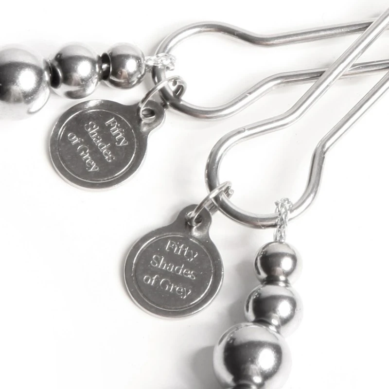 Fait Partie de la collection officielle « Fifty Shades Of Grey » approuvé par l’auteur E.L. James. Vendues avec un sac de rangement « Fifty Shades Of Grey », ces pinces à mamelons sont le cadeau idéal érotique pour les fans de la trilogie.