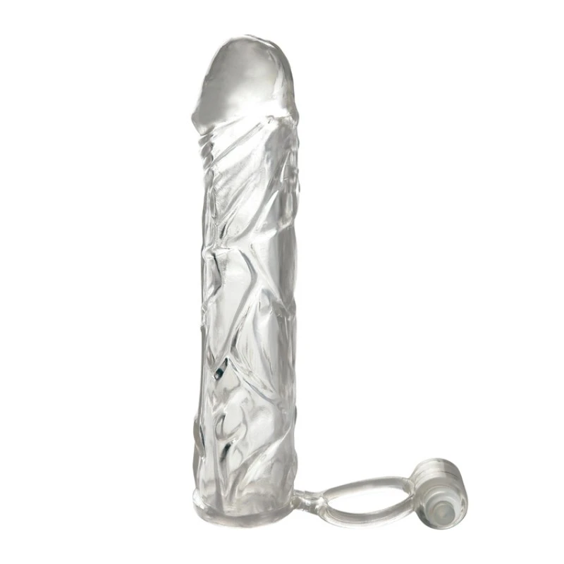 Le « Vibrating Super Sleeve » est une enveloppe extension avec texture réaliste qui vous donne la circonférence, la longueur et la confiance nécessaires pour satisfaire votre partenaire. C’est super-extensible pour accueillir la plupart des tailles et suffisamment serré pour vous aider à durer plus longtemps. La sangle de testicules retient l’extension en place, prolonge l’éjaculation, et dispose d’un micro vibrateur puissant pour un orgasme explosifs. Votre partenaire appréciera une pénétration plus profonde avec le « extension 1po à la pointe, pendant que vous regardez votre bite grossir plus que jamais à travers l’enveloppe transparente! Essayez-le dans la douche ou le spa et tournez l’heure du bain en heures de plaisir!