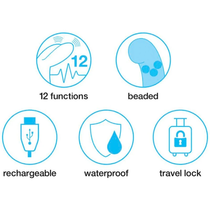 • 12 modes de vibration (9 vitesses et motifs dans les oreilles, 3 vitesses dans le manche)