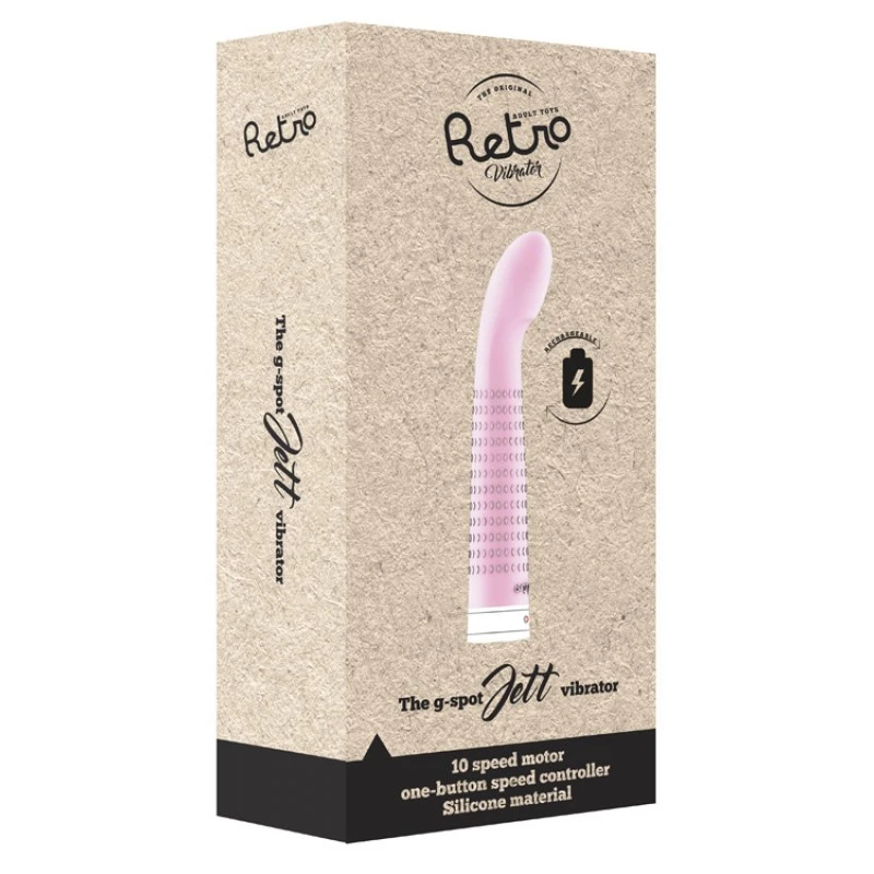 Le Jett a l’air et semble tout droit venu des années 50 mais combine le sentiment nostalgique avec la technologie d’aujourd’hui. Son moteur puissant à 10 vitesses révolutionnera votre vie durant l’insertion ou la stimulation clitoridienne et il est parfait à la fois pour jouer toute seule ou en couples ! Le motif en losange sur la hampe fournira une stimulation supplémentaire, tandis que la pointe incurvée ne manquera pas de stimuler à chaque passage votre point-g ! Le contrôleur de vitesse à un bouton est sur la partie inférieure pour un usage facile et confortable. Chargez le Jett avec le câble USB inclus et soyez prête à revenir aux années 50 !