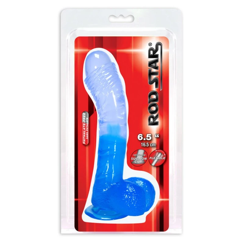 Rod Star®, flexible, doux, durable, des années de bonheur et de bon fonctionnement. Sans phtalate ni latex et sans odeur, il est doux et sécuritaire pour votre peau. Assurez-vous d’avoir un authentique produit Rod Star®; pour la qualité, la fiabilité,la sécurité, le confort et votre entière satisfaction. Il a une longueur totale de 6.5″ (16.5cm), un diamètre de 1.6’’ (4 cm) ainsi qu’une ventouse à sa base. Un pénis deux couleurs translucide clair avec une forte courbe pour bien le ressentir et une petite paire de testicules.