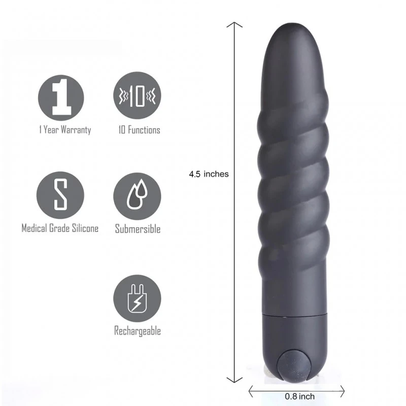 Le Maia Novelties Lola mesure 4,5 pouces de longueur et est env. ¾ pouces de large et comprend un câble de chargement USB. Tous nos produits rechargeables incluent notre garantie de remplacement d’un an.