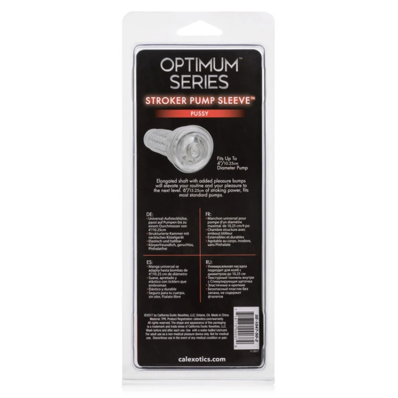 Prêt pour une séance de pompage ultra-confortable ou préférez-vous vous livrer à un jeu solo sensationnel? Quelles que soient vos envies, les manchons Stroker Pump Sleeve ™ de la série Optimum ™ sont prêts à vous faire passer au niveau supérieur. Cette entrée ultra-extensible en forme de bouche possède un corps allongé et des rangées de perles stimulantes pour une expérience de masturbation intense avec des résultats vraiment explosifs. Le manchon de qualité convient à la plupart des pompes standard mais peut être utilisé indépendamment pour une expérience passionnée de caresses. Le jouet de masturbation TPR de qualité supérieure est un produit sans danger, sans parfum et sans phtalate, pour vous heureux et en bonne santé. Profitez d’un nettoyage facile avec ce stroker sans entretien. Il suffit de la laver à l’eau chaude et au savon avant et après chaque utilisation. Utilisez suffisamment de lubrifiant pour une insertion facile.