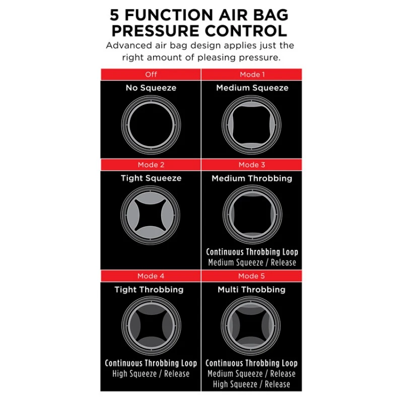 • Contrôle de la pression de la boîte à air à 5 fonctions – La conception avancée du sac gonflable donne juste la bonne quantité de pression. Appuyez pour activer et maintenez la touche enfoncée pendant 3 secondes pour la relâcher.