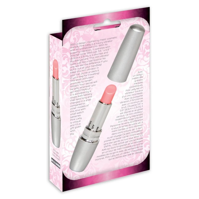 Avec un design inspiré des grandes marques cosmétiques, Pink Lady est un vibrateur luxueux d’un chic incontesté. Avec sa puissante vibration, il fonctionne avec un minimum de bruit. D’à peine 3.5’’ x 0.9’’ (8.9cm x 2.3cm), il est discret et se glisse partout.