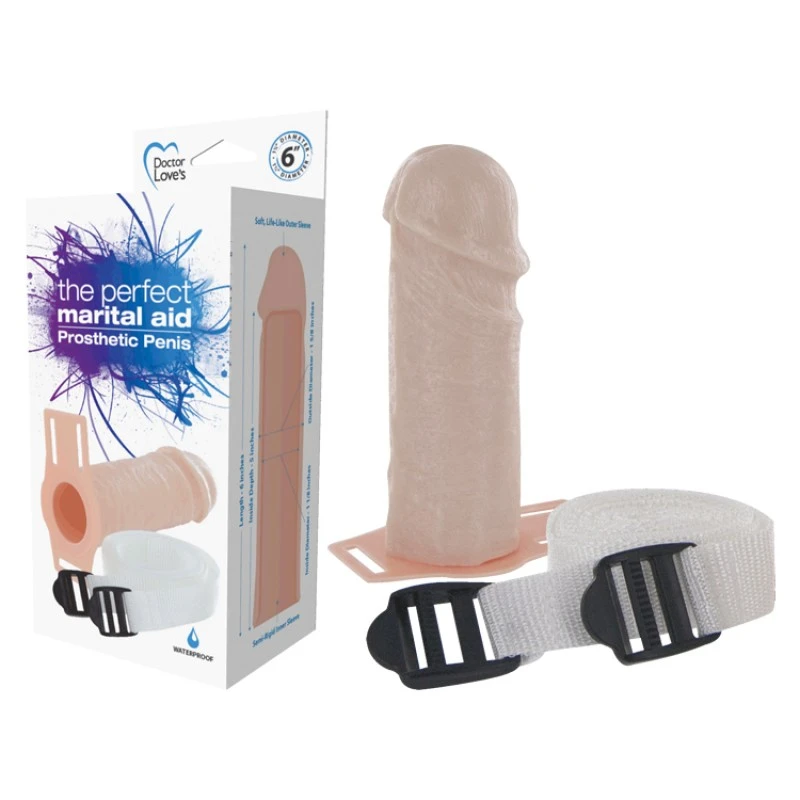 Les désirs sexuels, entre partenaire, sont puissants, passionnés, et ne devraient pas être mis de côté à cause de dysfonctionnements érectiles. La prothèse de 6’’ de long est parfaite pour maintenir une relation physique érotique et satisfaisante. Fournie avec de larges courroies ajustables jusqu’à 50’’. L’intérieur de la prothèse a un diamètre de 1 1/8” (2.85cm) et 5” (12.7cm) de profondeur. L’extérieur a un diamètre de 1 5/8” (4.12cm) avec une longueur de 6” (15.24cm). Fièrement fait au Canada.