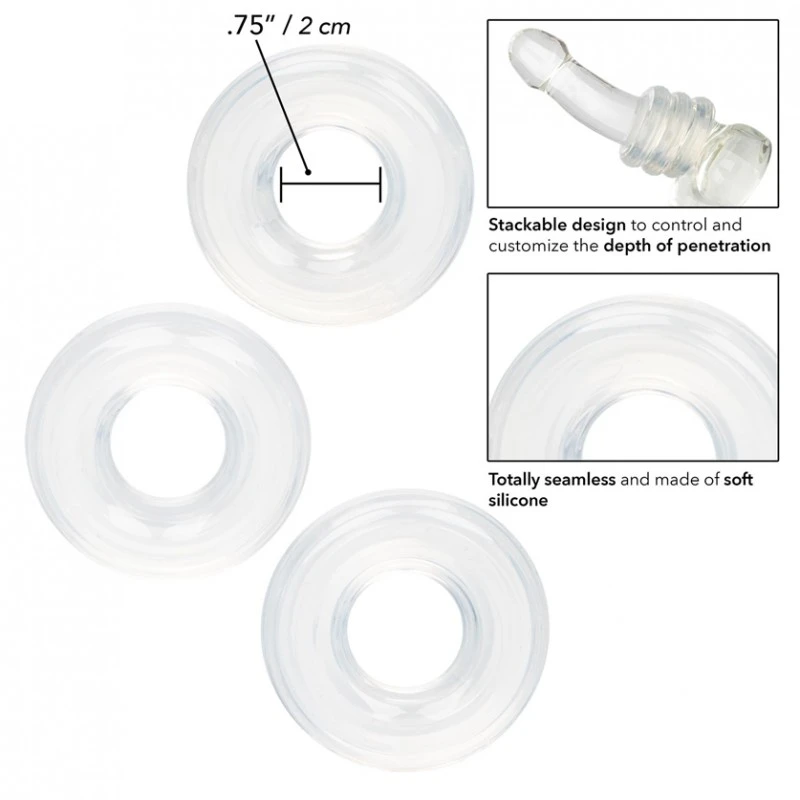 L’ensemble de 3 anneaux d’empilage en silicone transformera une pénétration inconfortable en une expérience véritablement somptueuse et confortable. Les anneaux péniens flexibles peuvent être empilés ou utilisés indépendamment pour aider à contrôler et à personnaliser la profondeur de pénétration. Notre pile de bagues en silicone personnalisable s’ajuste parfaitement sur vous pour fournir un coussin moelleux à votre partenaire. Les anneaux extensibles vous permettent de contrôler totalement la profondeur de pénétration pour une pénétration confortable.