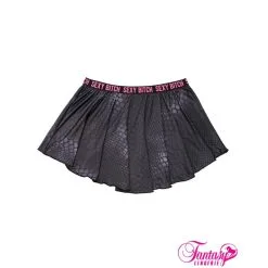 Minijupe texturée à motif peau de serpent avec « SEXY BITCH » imprimé sur la taille haute élastique et un ourlet ondulé. (Présenté avec l’ensemble de 2PC FAAF912; vendu séparément)