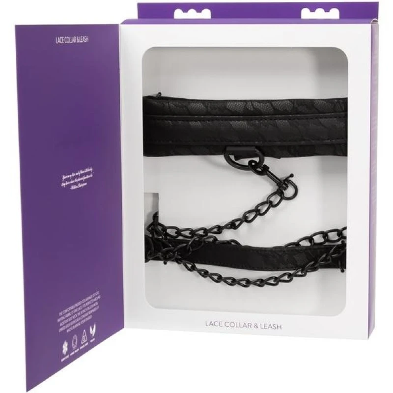 Avec une belle dentelle en relief, cet ensemble est le moyen idéal pour se sentir à l’aise tout en contrôlant. Le col rembourré en dentelle est si sexy et confortable qu’il pourrait bien devenir un accessoire de jeu préféré. Le collier offre une fermeture velcro sécurisée pour un dégagement facile et est attaché avec une chaîne en métal de 30″ qui s’accroche à la boucle du collier. Cette chaîne se connecte à une poignée en dentelle en relief qui est lisse et facile à tenir.