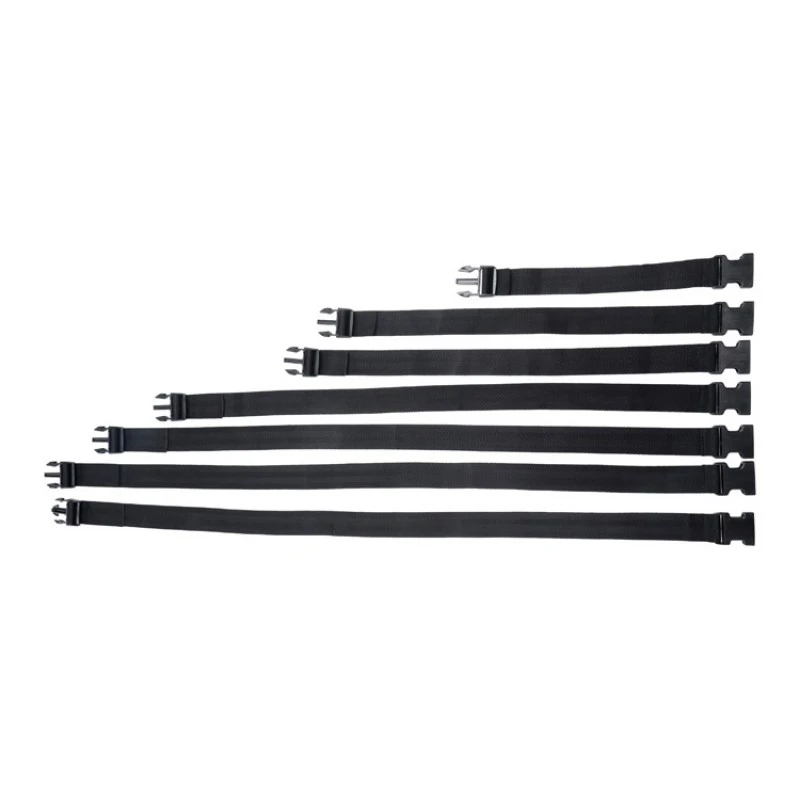 Les longueurs maximales de chaque sangle sont les suivantes: 14,5 pouces, 21,5 pouces, 21,5 pouces, 32 pouces, 40 pouces, 41 pouces et 41,5 pouces.