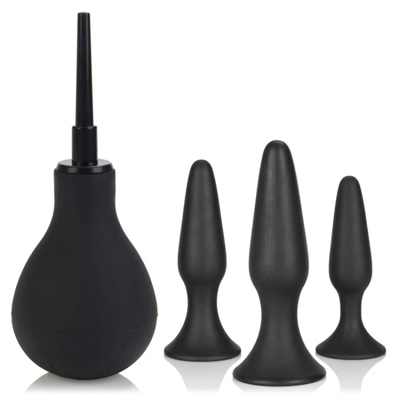 Ouvrez la porte des sensations anales palpitantes avec le kit Ultimate Anal. Ce kit comprend un ensemble de 3 sondes anales graduées et une grande poire à lavement pour vous permettre de profiter confortablement et en toute sécurité d’une stimulation anale passionnée. Nos sondes coniques en silicone vous permettent d’augmenter doucement la taille lorsque vous les insérez et que vous vous entraînez.