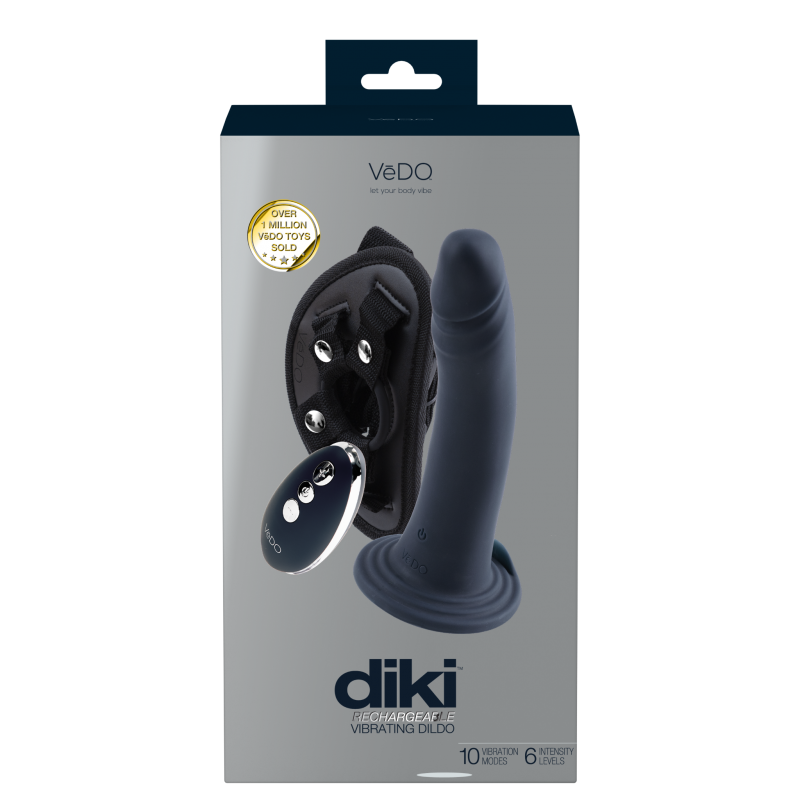 DIKI dispose de 2 moteurs super puissants. Avec 10 modes de vibration et 6 niveaux d’intensité, vous ne pourrez jamais quitter la maison sans. La base super ventouse vous permet de le placer sur n’importe quelle surface plane. Fabriqué en silicone lisse et soyeux, la tige flexible permet une insertion facile. Avec un harnais réglable, taille unique pour tous et une télécommande élégante – la récréation est un jeu d’enfant. Complètement submersible, n’ayez pas peur de mouiller DIKI.