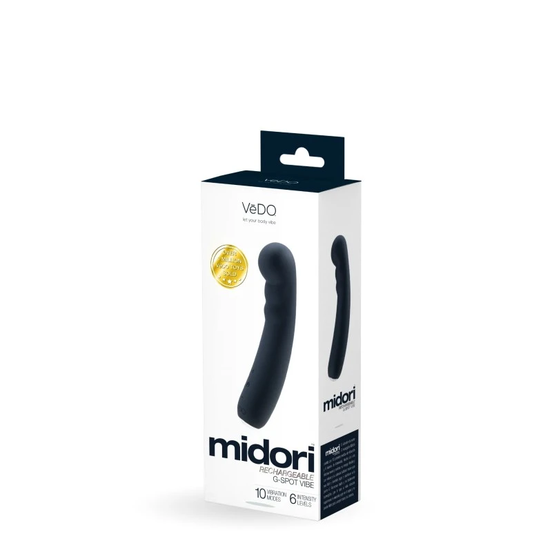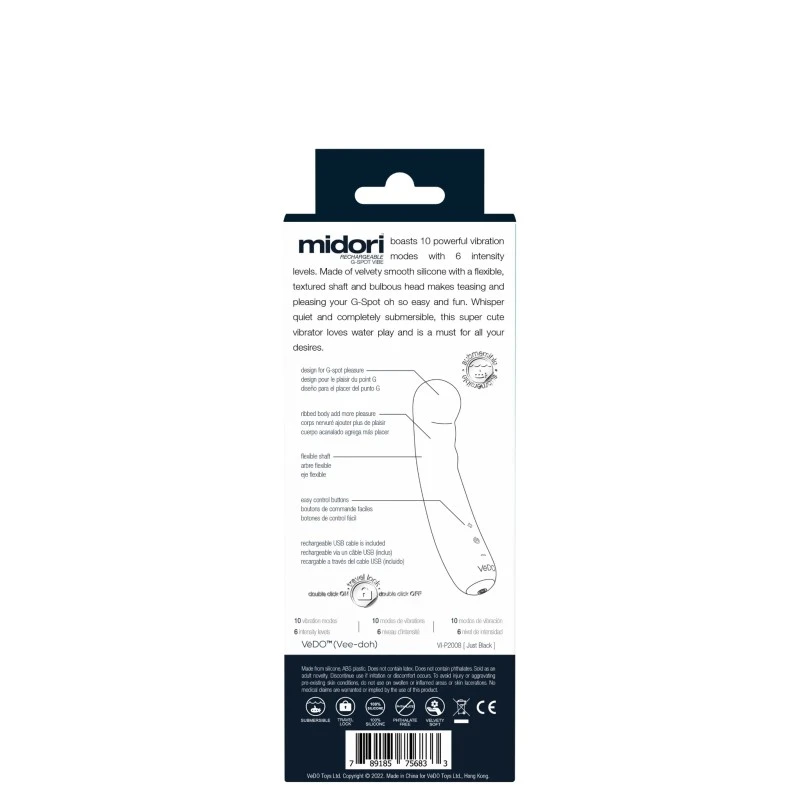 MIDORI dispose de 10 modes de vibration puissants avec 6 niveaux d’intensité. Fabriqué en silicone lisse et velouté avec une tige flexible et texturée et une tête bulbeuse, taquiner et plaire à votre point G est si facile et amusant.