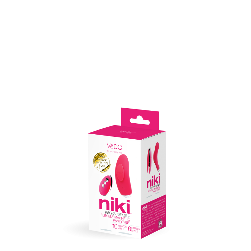 Le vibromasseur rechargeable pour culotte NIKI offres 10 modes de vibration puissants et 6 niveaux d’intensité. Niki est élégant, sexy et complètement flexible. Il est conçu pour s’adapter à vos courbes et venir stimuler votre clitoris. Discret et entièrement submersible.Pour une sortie discrète et amusante.