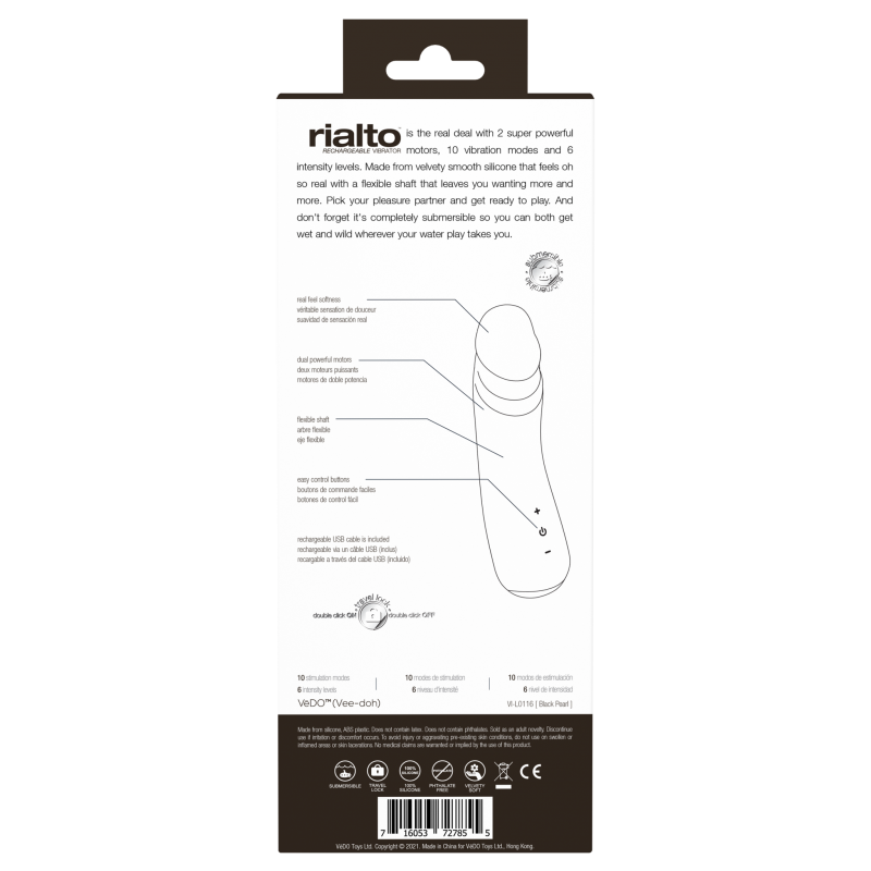 RIALTO est la vraie affaire avec deux moteurs super puissants, 10 modes de vibrations et 6 niveaux d’intensité. Fabriqué à partir de silicone lisse et velouté qui semble si réel avec une tige flexible qui vous laisse de plus en plus envie. Choisissez votre partenaire de plaisir et préparez-vous à jouer. Et n’oubliez pas qu’il est complètement submersible pour que vous puissiez à la fois être mouillé et sauvage où que votre jeu aquatique vous mène.