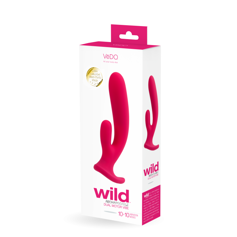 Le vibromasseur rechargeable WILD fonctionne avec 2 moteurs indépendants extrêment puissant à 3 vitesses et 9 modes de vibration. Le manche flexible chatouillera et ravivra votre Point G, tandis que l’autre manche ira stimuler votre clitoris. Le WIDL est fait d’un design élégant avec un manche ergonimique. Il est discretet entièrement submersible.