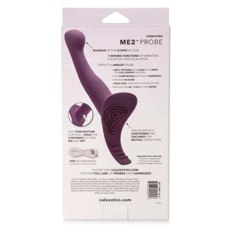 La sonde vibrante ME2 ™ est la sonde aux contours uniques dont vous rêvez. Conçus pour une satisfaction mutuelle assurée, l’embout de masseur en forme de bulbe, la tige incurvée, les 7 fonctions de vibration et la base en font le paradis du plaisir pour deux. Sentez la chaleur monter, la base texturée et profilée de ce masseur vibrant épouse vos points de plaisir intimes. La tige incurvée et la pointe bulbeuse lui offrent une stimulation intense du point g. La forme polyvalente et la base profilée du vibrateur vous permettent de glisser cette sonde dans votre harnais préféré pour avoir les mains libres. Utilisez le bouton de commande tactile pour faire défiler 7 fonctions de vibration, escalade et pulsation. Rechargez le masseur vibrant en silicone de qualité supérieure en 2 heures avec le câble de chargement USB fourni pour profiter d’une heure et demie de stimulation à grande vitesse ou de 2 heures de vibrations à basse vitesse. Le vibrateur est imperméable. Le silicone hypoallergénique de qualité supérieure est sans danger pour le corps, sans parfum et sans phtalate pour vous garder heureux et en bonne santé.