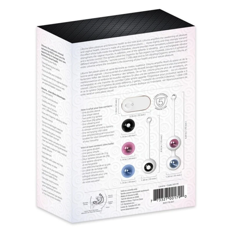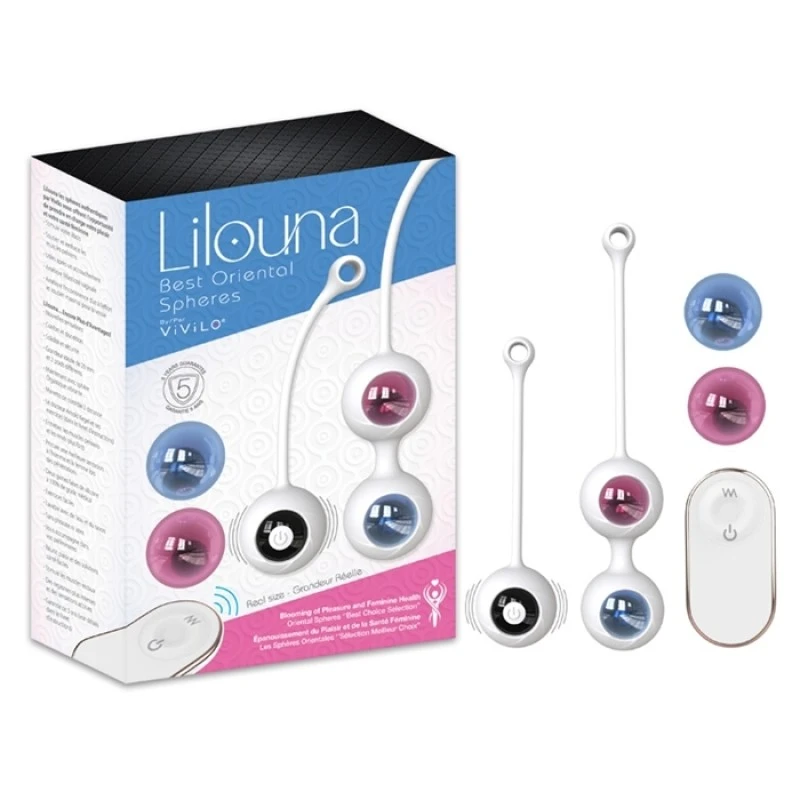 | LILOUNA c’est Quoi et Pourquoi? En plus une des sphères est vibrante… oui avec un vibrateur rechargeable dans son intérieur et une manette de contrôle! Cette sphère que nous appelons la sphère Orgastique a 9 vitesses intenses et son but est la jouissance rapide. LILOUNA avec ses 4 sphères de poids différents, ses 2 gaines en pure silicone et sa 5e sphère Orgastique vibrante, vous transporte dans un univers érotique où l’inévitable résultat est l’épanouissement de votre santé et votre plaisir sexuel. LILOUNA c’est deux choses : 1. Entretenir, améliorer et conserver votre santé féminine sexuelle et 2. Donner plus de plaisir à vous et votre partenaire. Origine des Sphères Orientales et leur évolution De nos jours, elles ont été popularisées encore plus avec le phénomène ‘’Fifty Shades of Grey’’ elles sont aussi souvent appelées Ben Wa Balls ou Boules de Geisha, ou Boules de Kegel ou Boules Chinoises et fabriquées maintenant dans des matières beaucoup plus efficaces et confortables. Toute l’évolution de ces sphères est maintenant rendue dans LILOUNA, une conception améliorée pour un excellent ‘’fitness’’ sensuel faite par Vivilo. Le 1er but de Lilouna : stimulation et raffermissement des muscles du périnée, son 2e but : offrir une meilleure sensation à votre partenaire lors des pénétrations, son 3e but : découvrir de nouvelles sensations. Lorsque vous les portez, que vos mouvements soient délicats ou très énergiques, ils vont toujours se transmettent à l’intérieur des sphères Lilouna, provoquant une onde vibratoire des plus énergisantes. Si vous désirez encore plus de plaisir, utilisez la sphère Orgastique vibrante, son but à elle est la jouissance rapide. Favorisez donc votre santé féminine, favorisez de meilleurs orgasmes, atteignez plus vite votre jouissance et comblez votre partenaire. | ![]() |