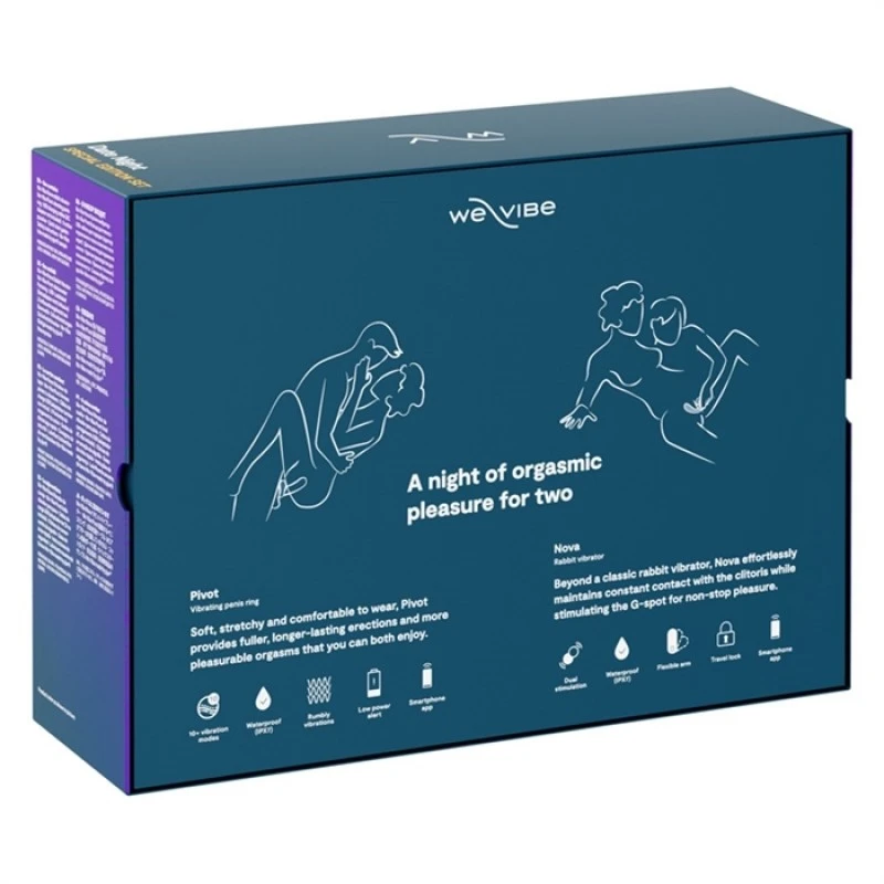C’est un moment, une nuit ou un week-end de plaisir orgasmique dans une magnifique boîte cadeau. Conçu pour améliorer l’intimité et le jeu en couple, le Nova 2 procure des orgasmes mixtes tandis que le Pivot améliore et prolonge l’érection pour une soirée qui dure toute la nuit.