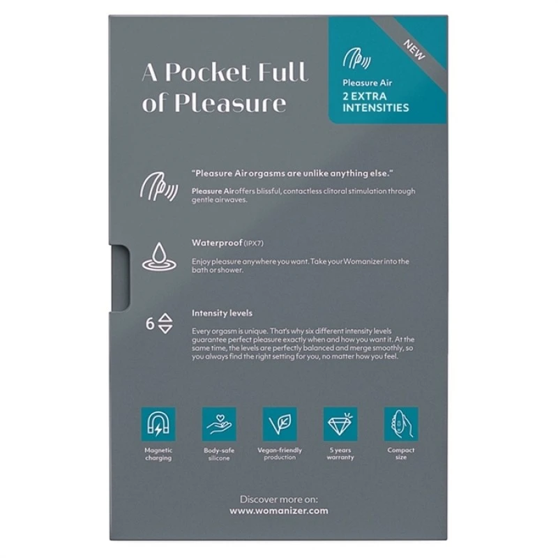 L’invention révolutionnaire de Womanizer qui a changé la donne en matière de jouets sexuels. Notre technologie originale Pleasure Air Technology offre une stimulation sans contact grâce à une légère pression d’air sur votre clitoris. Le résultat ? Vous avez l’impression de marcher sur l’air. Laissez les douces vibrations vous guider vers des orgasmes incroyables.